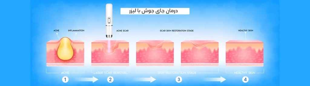 جهت درمان جای جوش و زخم با استفاده از لیزر قبل از انجام کار کرم بی حسی موضعی بر روی ناحیه مورد نظر می زنند. روند درمان نزدیک به 30 دقیقه طول خواهد کشید. نحوه درمان و کار با هر کدام از دستگاه های لیزر ممکن است متفاوت باشد.